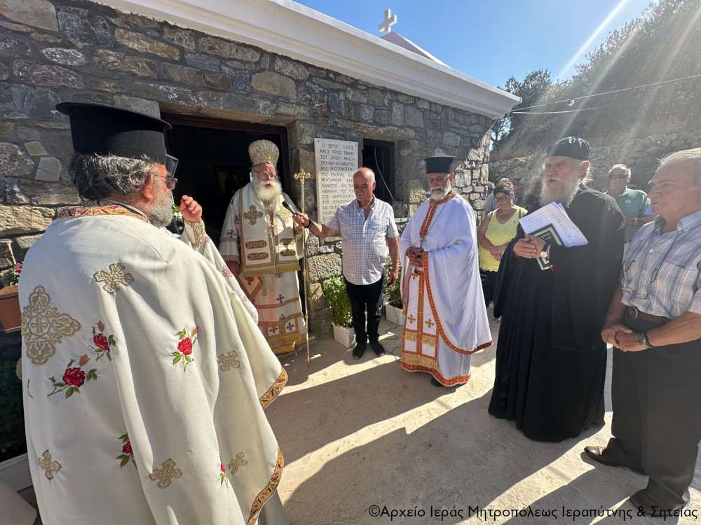 Με την πρέπουσα λαμπρότητα και σύμφωνα με την εκκλησιαστική τάξη τελέσθηκαν από τον Σεβ. Μητροπολίτη Ιεραπύτνης και Σητείας κ. Κύριλλο το Σάββατο 24 Αυγούστου 2024 τα Ιερά Εγκαίνια του Ιερού Ναού του Αγίου μεγαλομάρτυρος Χριστοφόρου στην ειδυλλιακή και πανοραμική θέση «Μόσκος», με θέα το απέραντο γαλάζιο του Κρητικού Πελάγους, της Ενορίας Έξω Μουλιανών Σητείας.