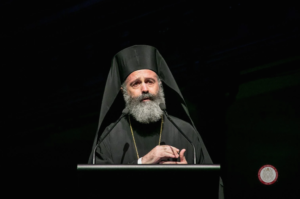Η ξεχωριστή αυτή βραδιά ολοκληρώθηκε με έναν σύντομο χαιρετισμό του Σεβασμιωτάτου κ.κ. Μακαρίου, ο οποίος, παίρνοντας τον λόγο, παρακάλεσε πρώτα το ακροατήριο να σηκωθεί για μία σύντομη, κοινή προσευχή για την επικράτηση της ειρήνης στην Ουκρανία. Εν συνεχεία, μίλησε με αισθήματα υιικής αγάπης, σεβασμού και θαυμασμού για τον Προκαθήμενο της Ορθοδοξίας. Κάνοντας λόγο για μια τεράστια εκκλησιαστική και ηγετική προσωπικότητα, επισήμανε ότι ο Οικουμενικός Πατριάρχης «συνδυάζει επιστημονική γνώση, θεολογική παιδεία, χρηστότητα ήθους και διοικητική ικανότητα». «Και όλα αυτά, σε συνάρτηση με τη βαθιά ευσέβεια που τον διακρίνει, τη σεμνότητα, την πραότητα, την αρετή της απλότητος και κυρίως την ανιδιοτελή και αφειδώλευτη αγάπη του, δημιουργούν το πρότυπο του τέλειου εκκλησιαστικού ηγέτου», προσέθεσε.