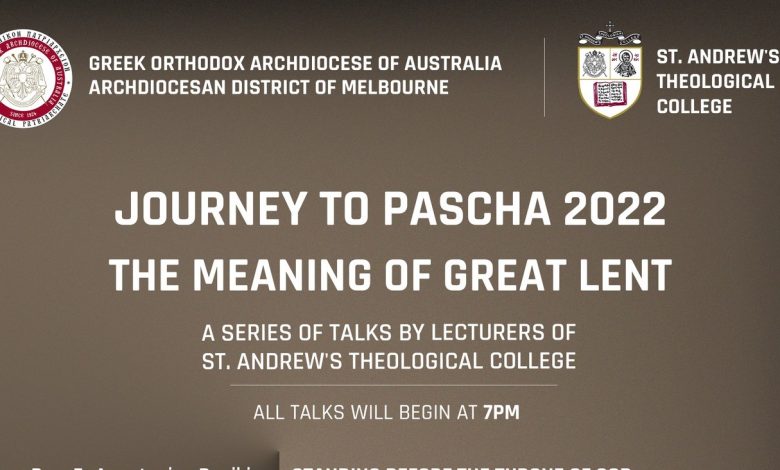 Μία σειρά ομιλιών με κεντρικό θέμα τη σημασία της Μεγάλης Τεσσαρακοστής, διοργανώνει η Αρχιεπισκοπική Περιφέρεια Μελβούρνης, με τη συμμετοχή στελεχών της Θεολογικής Σχολής του Αποστόλου Ανδρέου Σύδνεϋ. Οι ομιλίες λαμβάνουν χώρα σε διάφορες ενορίες της Μελβούρνης, με ώρα έναρξης όλες στις 7 μ.μ.