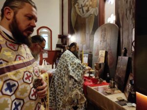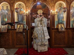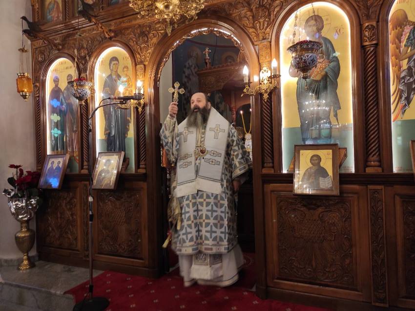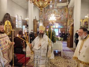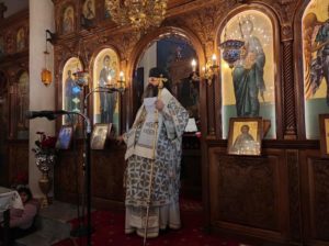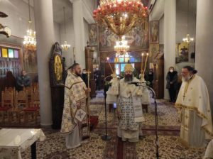 Με την εντολή του Ποιμενάρχου, Σεβασμιωτάτου Μητροπολίτη κ. Διονυσίου, ο οποίος είχε μεταβεί στην Κρήτη για την ενθρόνιση του νέου Αρχιεπισκόπου Κρήτης κ. Ευγενίου, της Θείας Λειτουργίας προέστη ο Θεοφιλέστατος Επίσκοπος Κεγχρεών και Πρωτοσύγκελλος της Ιεράς Μητροπόλεως κ. Αγάπιος πλαισιούμενος από τους Πανοσ. Αρχιμ. π. Αρκάδιο Ραζνύ, Εφημέριο Ναού Μεταμορφώσεως Σωτήρος Κορίνθου, Αιδεσ. π. Γρηγόριο Θεοδώρου, Εφημέριο Καθεδρικού ναού Απ. Παύλου Κορίνθου, και τον Διάκονο π. Χρήστο Χίλια.