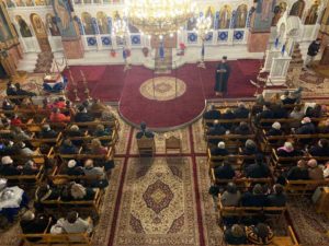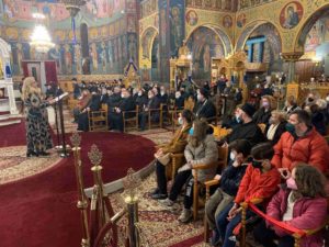 Κατά την διάρκεια της εκδήλωσης, δάσκαλοι και μαθητές από το Σχολείο Ψαλτικής, υπό τη διεύθυνση του Μουσικολογιωτάτου χοράρχου κ. Νικολάου Μπουσδέκη, έψαλλαν με ενάργεια πανηγυρικούς ύμνους από την εορτή της Υπαπαντής, ενώ στη συνέχεια η κ. Μαίρη Πίνη, Γενική Διευθύντρια του Κέντρου Στήριξης Οικογενείας (ΚΕ.Σ.Ο.) της Ιεράς Αρχιεπισκοπής Αθηνών, ανέπτυξε ομιλία με θέμα: «Αθέατες μανάδες στην καταστροφή της Σμύρνης: Οι προδοσίες, το βάρος της προσφυγιάς, ο ερχομός και η ενσωμάτωση στη μητέρα Ελλάδα».