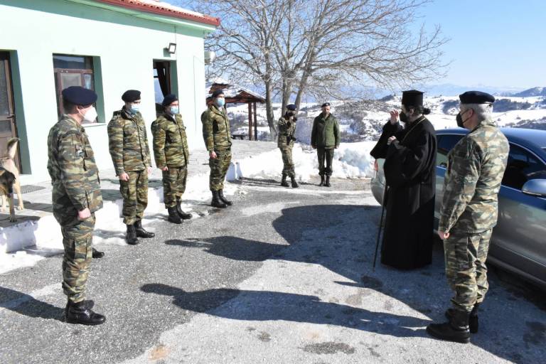 Τα Φυλάκια της συνοριακής γραμμής Ελλάδος-Αλβανίας στην Κρυσταλλοπηγή, την Ιεροπηγή και την Διποταμία, επισκέφθηκε το Σάββατο 5 Φεβρουαρίου, ο Σεβασμιώτατος κ. Καλλίνικος, συνοδευόμενος από τον Συνταγματάρχη κ. Σμαλιό και τον Διοικητή του 574 Τάγματος Προκαλύψεως Αντισυνταγματάρχη Παύλο Εφαπλωματά.