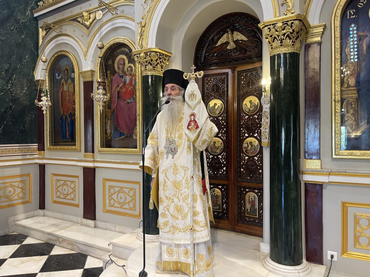 «Η Αγία μας Πίστις» «είναι αποκάλυψις. Ο Δημιουργός της ζωής, ο Κύριος των πάντων, η Σοφία, η Αγάπη, η Δικαιοσύνη, η Αλήθεια», «εξήγησαν στον χώρο και τον χρόνο την αλήθεια για τη ζωή και το θάνατο», είπε αρχικά κατά την διάρκεια του κηρύγματός του ο Σεβασμιώτατος, επισημαίνοντας πως «ο Υιός ενηνθρώπησε», «μπήκε στην ιστορία της ανθρωπότητας και εξήγησε τα της ζωής. Ήρθε, λοιπόν, και απεκάλυψε. Για αυτό και η πίστις μας είναι αποκάλυψις. Δεν είναι θρησκεία». «Ερμηνεύει τη ζωή και χαρίζει στον άνθρωπο τη δυνατότητα, αν το θέλει, να γίνει μέτοχος της Ακτίστου Θείας Ζωής, από αυτή τη ζωή, από αυτόν τον κόσμο».