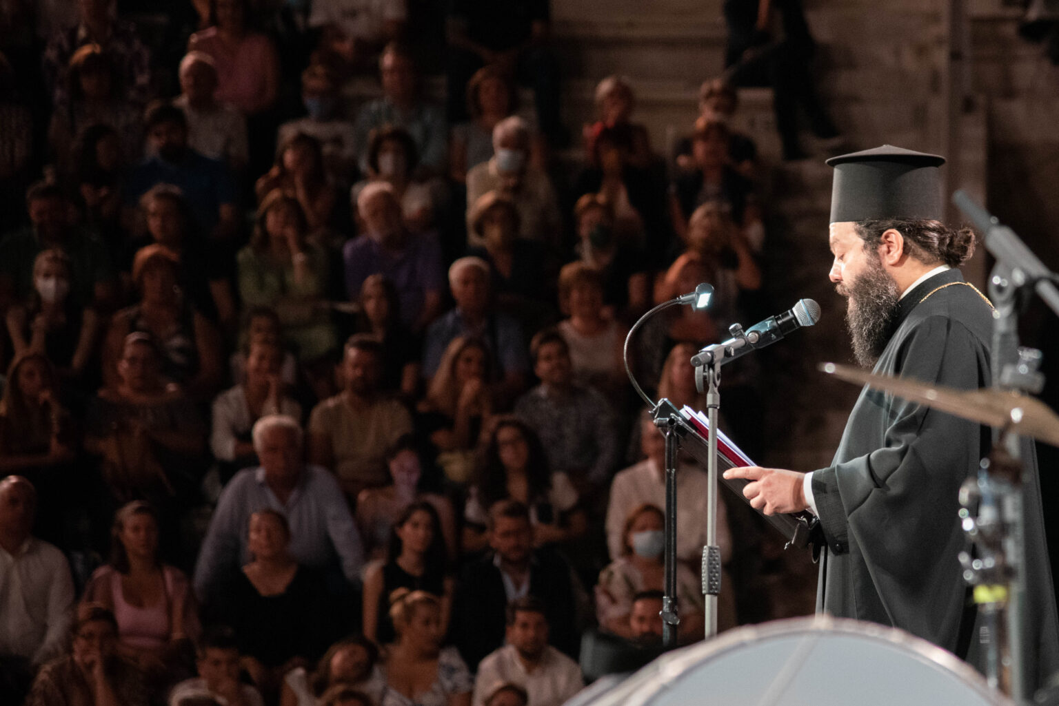 Την εκδήλωση προλόγισε ο Πανοσιολ. Πρωτοσύγκελλος της Ιεράς Μητροπόλεως Νέας Ιωνίας Αρχιμ. Επιφάνιος Αρβανίτης, ο οποίος αναφέρθηκε στη σημασία και στον σκοπό της επετειακής αυτής εκδήλωσης, η οποία προάγει τον μουσικό θησαυρό της καθ’ ημάς Ανατολής, ενώ παράλληλα εξέφρασε τις ευχαριστίες της Ιεράς Μητροπόλεως προς όλους όσους εργάσθηκαν και προσέφεραν για να υλοποιηθεί η συγκεκριμένη παράσταση.