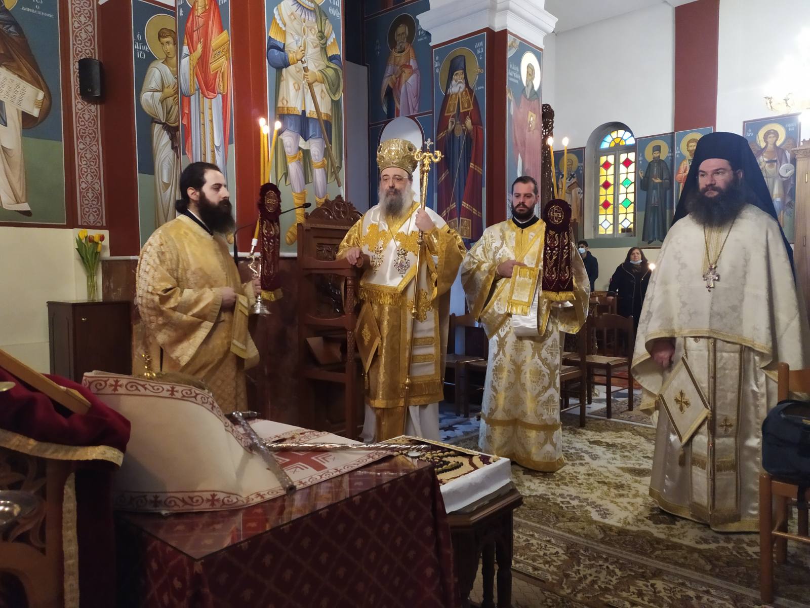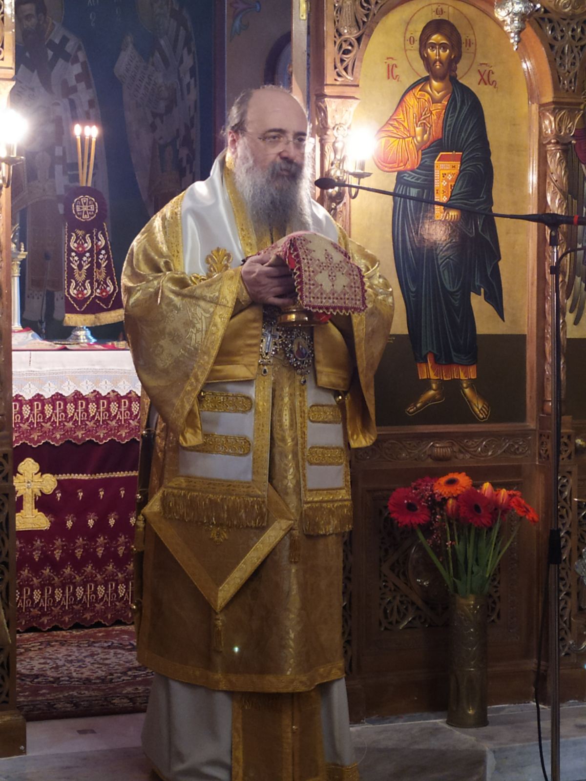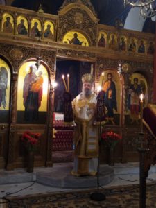 Ο Σεβασμιώτατος αναφέρθηκε στο κήρυγμά του, στους Αγίους της ημέρας, στον Όσιο Εφραίμ τον Σύρο και την Αγία Ανθούσα, μητέρα του Αγίου Ιωάννου του Χρυσοστόμου.