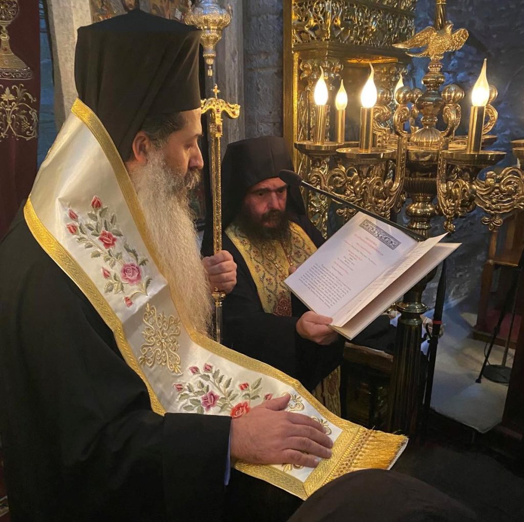 Την χειροθεσία της εις αρχαρίαν Ρασοφορίας της νέας αδελφής τέλεσε, κατόπιν της υπ’ αριθμ. 77/10.1.2022 Σεπτής Εντολής του Μακαριωτάτου Αρχιεπισκόπου Αθηνών και πάσης Ελλάδος κ. Ιερωνύμου, ο Σεβασμιώτατος Μητροπολίτης Φθιώτιδος κ. Συμεών, στο παλαιό Καθολικό της Ιεράς Μονής Παντοκράτορος, η οποία είναι ντυμένη στα λευκά από το χιόνι και σχεδόν αποκλεισμένη, πλαισιούμενος από τον Πρωτοσύγκελλο της Ιεράς Μητροπόλεως Αρχιμ. του Οικουμενικού Θρόνου π. Εφραίμ Τριανταφυλλόπουλο, τον Άγιο Καθηγούμενο της Ιεράς Μονής Παναγίας Αγάθωνος Αρχιμ. π. Γερμανό Γιαντσίδη, την Αγία Καθηγουμένη της Μονής Γερόντισσα Θεοφανώ και τα μέλη της Ιεράς Αδελφότητος.