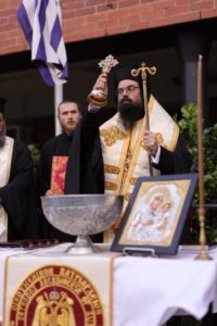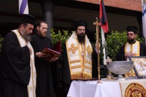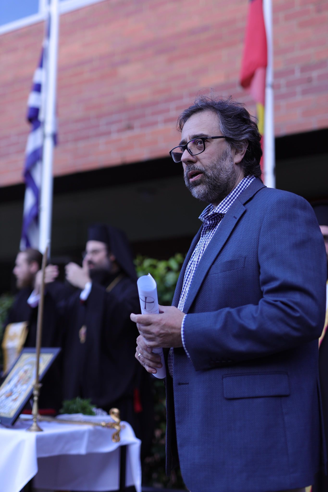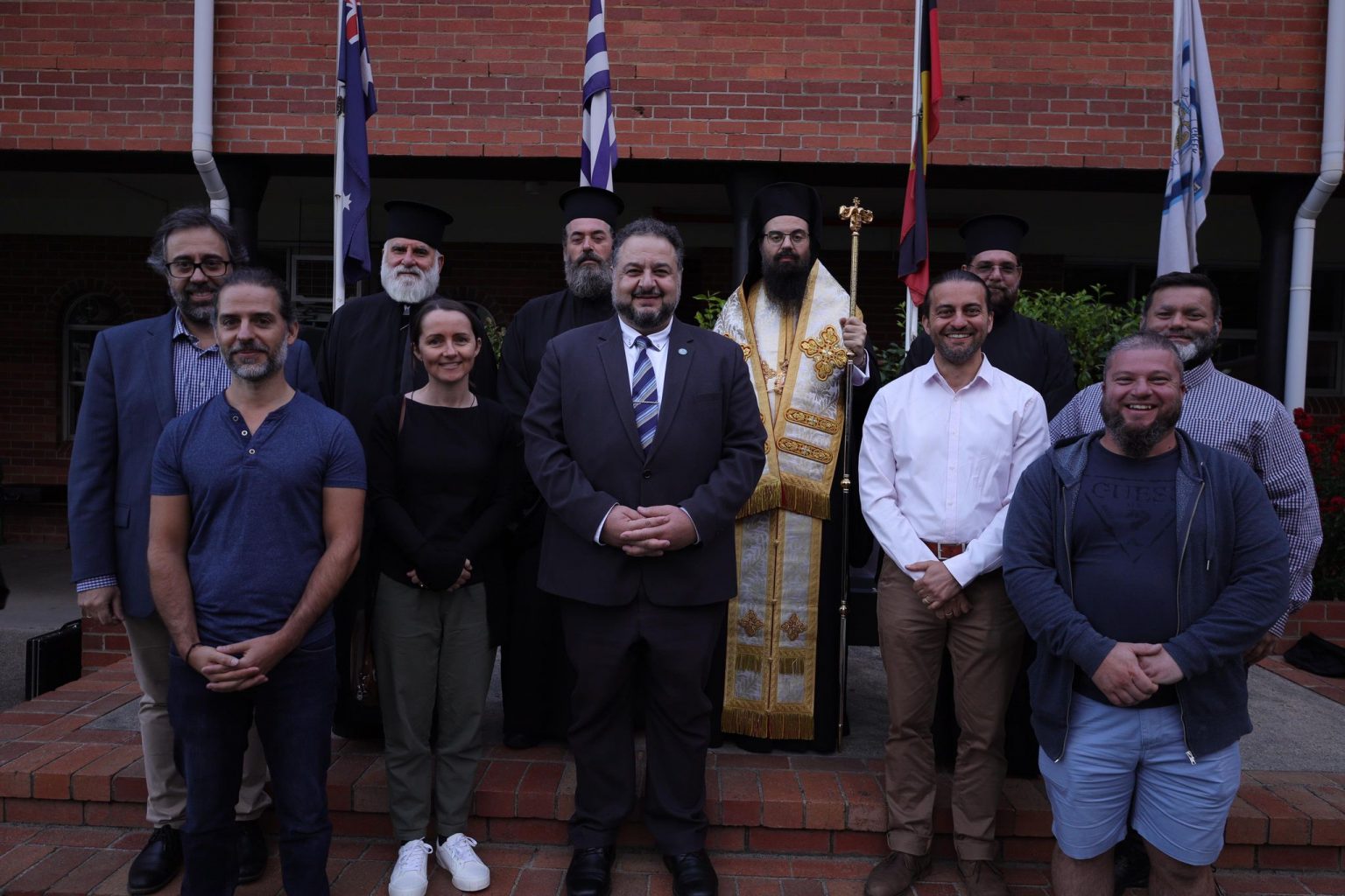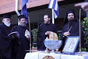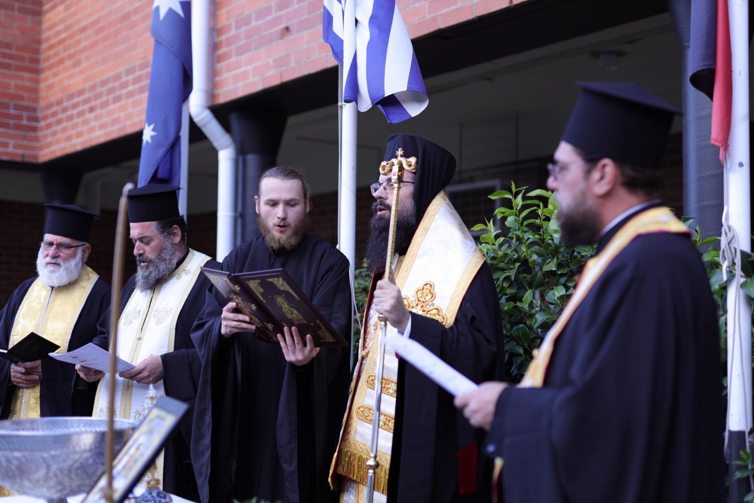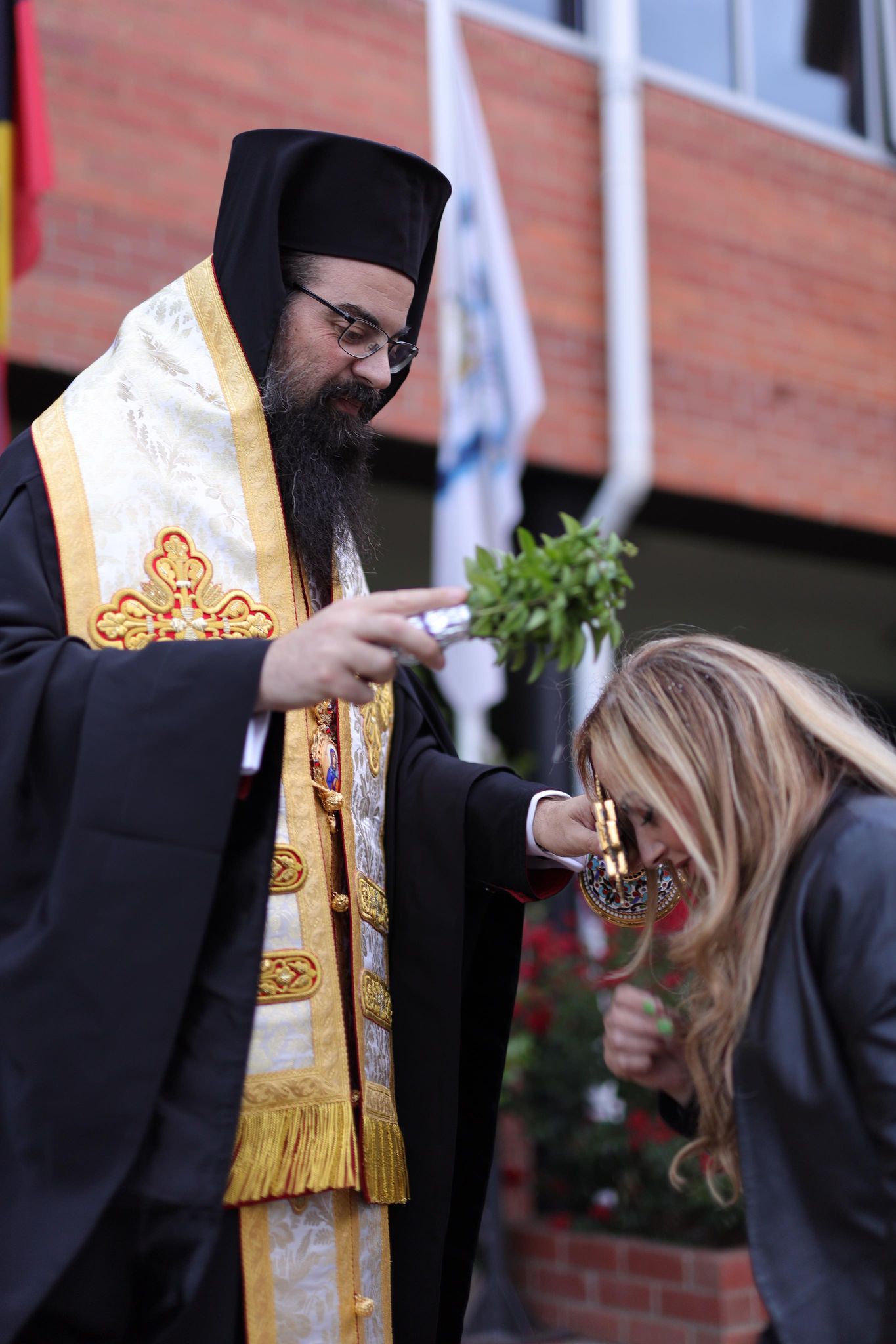 Τον Αγιασμό τέλεσε ο Θεοφιλέστατος Επίσκοπος Κερασούντος κ. Ευμένιος, πλαισιούμενος από ιερείς της Αρχιεπισκοπικής Περιφερείας Νορθ-Κόουτ και παρουσία των δασκάλων και των μαθητών της Σχολής.