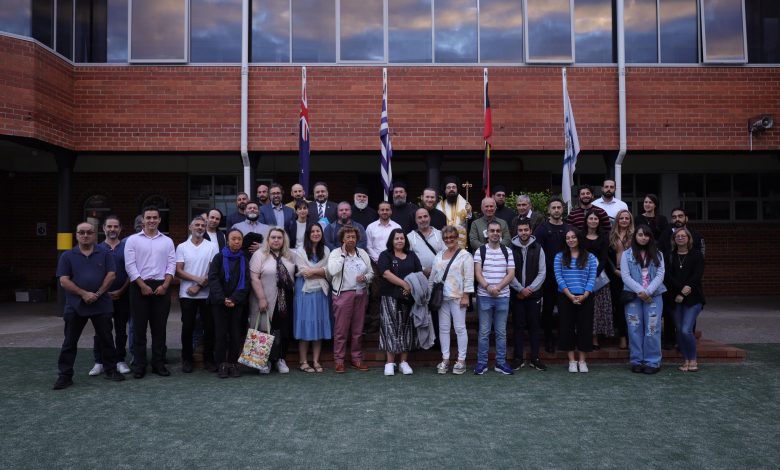Τον Αγιασμό τέλεσε ο Θεοφιλέστατος Επίσκοπος Κερασούντος κ. Ευμένιος, πλαισιούμενος από ιερείς της Αρχιεπισκοπικής Περιφερείας Νορθ-Κόουτ και παρουσία των δασκάλων και των μαθητών της Σχολής.