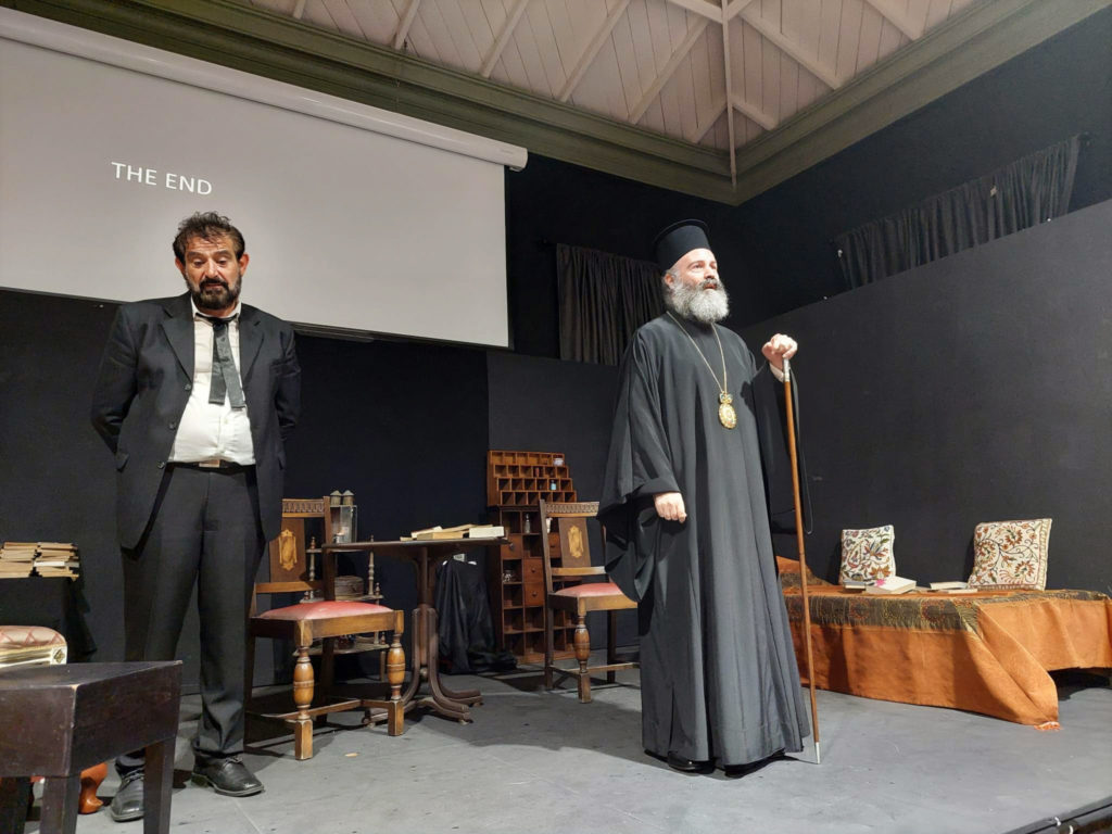 Στο τέλος της παράστασης, απευθύνοντας έναν σύντομο χαιρετισμό, ο Σεβασμιώτατος κ.κ. Μακάριος συνεχάρη θερμά όλους τους συντελεστές, ιδίως δε τον ηθοποιό κ. Πατέλη, για τον εξαιρετικό τρόπο με τον οποίο απέδωσε το έργο.