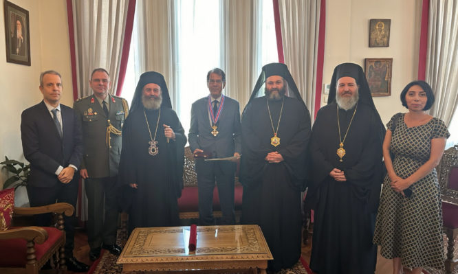 Σε αναγνώριση των πολύτιμων υπηρεσιών που προσέφερε στην Ελληνική Ομογένεια, όσο και της αγαστής συνεργασίας που ανέπτυξε με την Ορθόδοξη εν Αυστραλία Εκκλησία, ο Σεβασμιώτατος κ.κ. Μακάριος τίμησε τον Έλληνα διπλωμάτη, απονέμοντάς του το παράσημο του Μεγαλοσταύρου του Τάγματος των Φιλοχρίστων μετ’ Αστέρος.