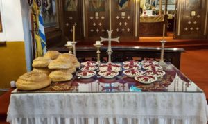 Λειτούργησε ο ιερατικώς Προϊστάμενος του Ιερού Ναού, Πρωτοπρεσβύτερος κ. Σταύρος Σολωμού, μετά του Αρχιδιακόνου κ. Γεωργίου Τσουρούς.