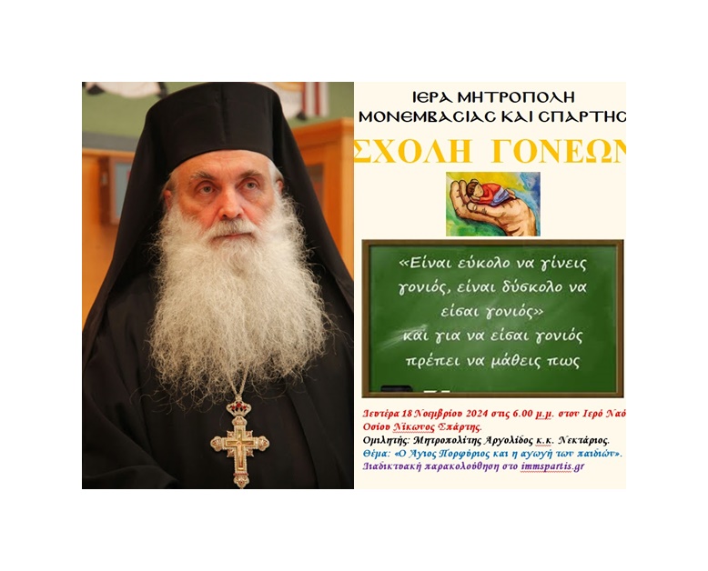 Η Σχολή Γονέων της Ιεράς Μητροπόλεώς μας συνεχίζει και κατά το φετινό εκκλησιαστικό έτος την προσπάθειά της για ενημέρωση και επιμόρφωση των γονέων σε θέματα παιδαγωγικής, αλλά και για την εμβάθυνση σε κρίσιμα θέματα, που καλούνται να χειριστούν οι νέοι και νέες μας στην ευμετάβλητη και αποπροσανατολιστική καθημερινότητα.