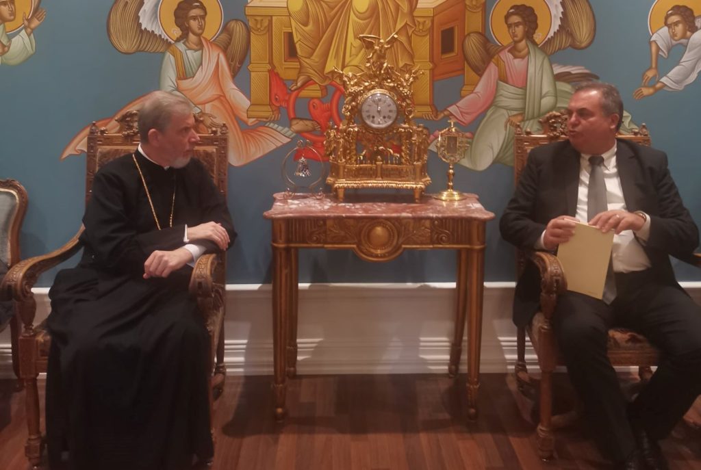 Ο Ποιμενάρχης διαβίβασε στους επισκέπτες τις πατρικές ευχές και ευλογίες της Α. Θ. Παναγιότητος, του Οικουμενικού Πατριάρχου κ. Βαρθολομαίου, ο δε κ. Δήμαρχος αναφέρθηκε στην προσκυνηματική επίσκεψή του στο Σεπτό Κέντρο της Ορθοδοξίας και την γνωριμία του με την Παναγιότητά Του.