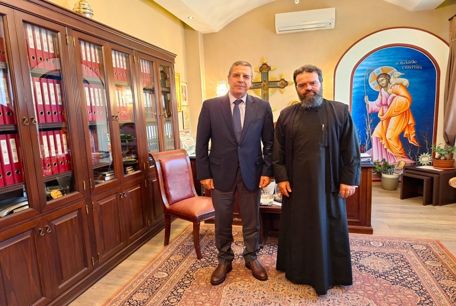 Ὁ Σεβασμιώτατος ὑποδέχθηκε θερμά τόν Ἀρχηγό, τόν εὐχαρίστησε γιά τήν ἐπίσκεψη καὶ εὐχήθηκε ὑγεία, δύναμη καί Καλό Πάσχα.