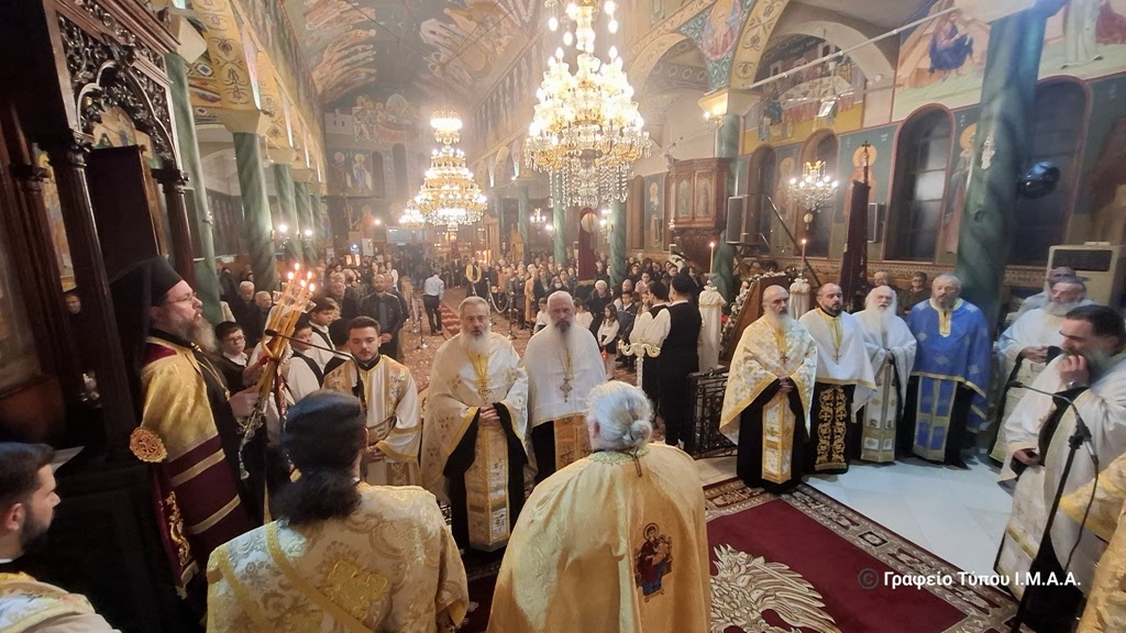 Ο Σεβασμιώτατος κατά την απόλυση του Εσπερινού ευχαρίστησε το Εκκλησιαστικό Συμβούλιο και τον Προϊστάμενο του Ναού για την προετοιμασία της ιεράς πανηγύρεως. Ευχαρίστησε τους Ιερείς που έλαβαν μέρος στην ακολουθία, τον π. Δημήτριο Αντωνίου για το θείο κήρυγμα, τους χορούς των ιεροψαλτών και όλους τους πιστούς που συμμετείχαν με ευλάβεια.