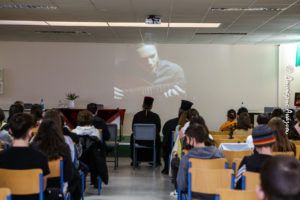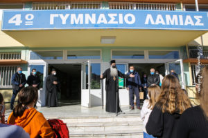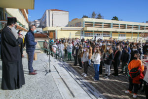 Αρχικά ο Σεβασμιώτατος κ. Συμεών στο προαύλιο του σχολείου ευχήθηκε πατρικά σε όλους τους μαθητές και τις μαθήτριες του σχολείου καλή πρόοδο και αναφέρθηκε στην αιτία της καλής προόδου του ανθρώπου, που είναι η αγάπη και ο αλληλοσεβασμός στον συνάνθρωπο και εν προκειμένω στον συμμαθητή μας, όπως τόνισε.