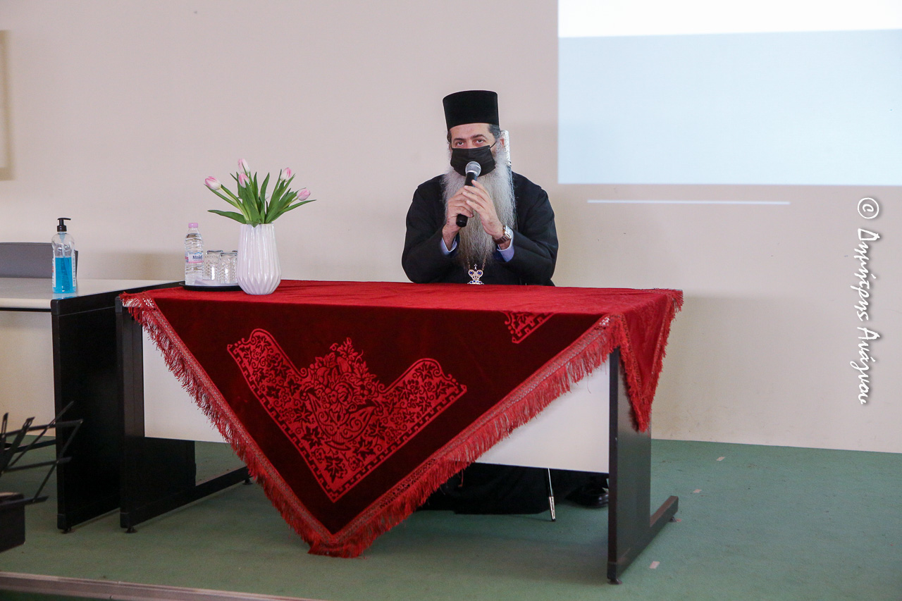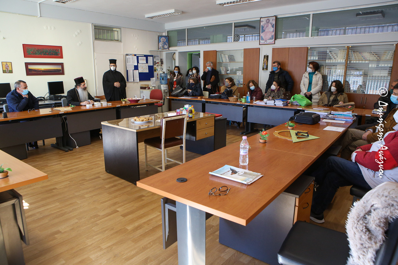 Ευχαρίστησε εγκαρδίως τον Διευθυντή του Σχολείου κ. Γεώργιο Καραγεώργο για την πρόσκληση και την υποδοχή και για αρκετή ώρα είχε την ευκαιρία ουσιαστικής επικοινωνίας με τους καθηγητές και τους μαθητές, στους οποίους και διένειμε διάφορες ευλογίες.