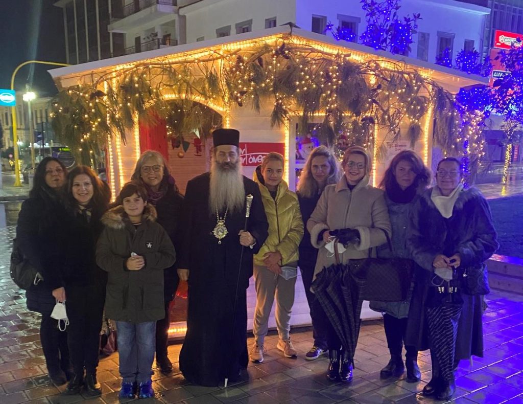 Ο Ποιμενάρχης της Φθιώτιδας παρά την ασταμάτητη βροχή μετέβη χθες το απόγευμα στο ειδικά διαμορφωμένο σπιτάκι του Συλλόγου στην καρδιά της Λαμίας, στην Πλατεία Πάρκου.