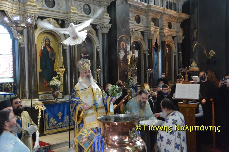 Στο τέλος της Θείας Λειτουργίας τελέσθηκε ο Μέγας Αγιασμός στην παλαιά κολυμβήθρα του Ναού.