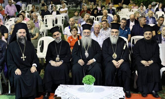 Προσκεκλημένος του Σεβ. Μητροπολίτου Δράμας κ. Δωροθέου, ο Επίσκοπος μας μετείχε στην ιερά πανήγυρη της εορτής του Αγίου Εθνοϊερομάρτυρα Χρυσοστόμου, Επισκόπου Σμύρνης, του από Δράμας. Εορτή, η οποία τελέστηκε σε περικαλλή Ιερό Ναό, αφιερωμένο στον άγιο Χρυσόστομο Σμύρνης, μοναδικό ίσως σε όλη την Ελληνική επικράτεια. Ναό, που χτίστηκε με την ευχή και ευλογία του μακαριστού Μητροπολίτου Δράμας κυρού Παύλου και την άοκνη και φιλότιμη προσπάθεια του Παν. Αρχ. κ. Γερασίμου Βλατίτση, Ιερατικώς Προϊσταμένου του εν λόγω Ιερού Ναού. Του Εσπερινού χοροστάτησε ο Θεοφιλέστατος Επίσκοπος Αριανζού κ. Βαρθολομαίος, βοηθός Επίσκοπος του Σεβ. Μητροπολίτου Γερμανίας κ. Αυγουστίνου, ο οποίος και μίλησε επίκαιρα. Ακολούθησε, στους άνετους προαύλιους χώρους του Ναού, λαμπρή πολιτιστική εκδήλωση, με την συμμετοχή πλήθους κόσμου, κατά την διάρκεια της οποίας τιμήθηκαν εξέχοντα πρόσωπα της Δράμας, από τον χώρο του αθλητισμού, της παιδείας, της τέχνης, κ.α., που ξεχώρισαν κατά την παρόν έτος.