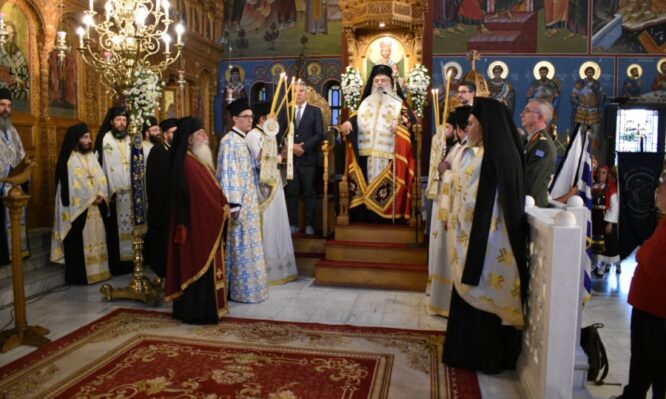 Τὸ ἀπόγευμα τῆς αὐτῆς ἡμέρας, στόν Ἱερὸ Καθεδρικὸ Ναὸ Εὐαγγελισμοῦ τῆς Θεοτόκου Κομοτηνῆς, τελέστηκε Ἐπίσημη Δοξολογία ἐπί τῇ Ὑποδοχῇ τοῦ Μακαριωτάτου, παρουσίᾳ ἐκπροσώπων τῶν πολιτικῶν καὶ στρατιωτικῶν ἀρχῶν τῶν φορέων καὶ τῶν Πολιτιστικῶν Συλλόγων τῆς περιοχῆς μας. Ἐν συνεχείᾳ ὁ Μακαριώτατος προέστη τῆς Ἐπιμνημοσύνου Δεήσεως, ὑπέρ τῶν ὑπό τῶν Τούρκων ἀναιρεθέντων Κυπρίων Ἡρώων, Κληρικῶν καὶ Λαϊκῶν, κατά τὴν τουρκική εἰσβολή τοῦ 1974, στὴ μαρτυρική καὶ ἁγιοτόκο Κύπρο.