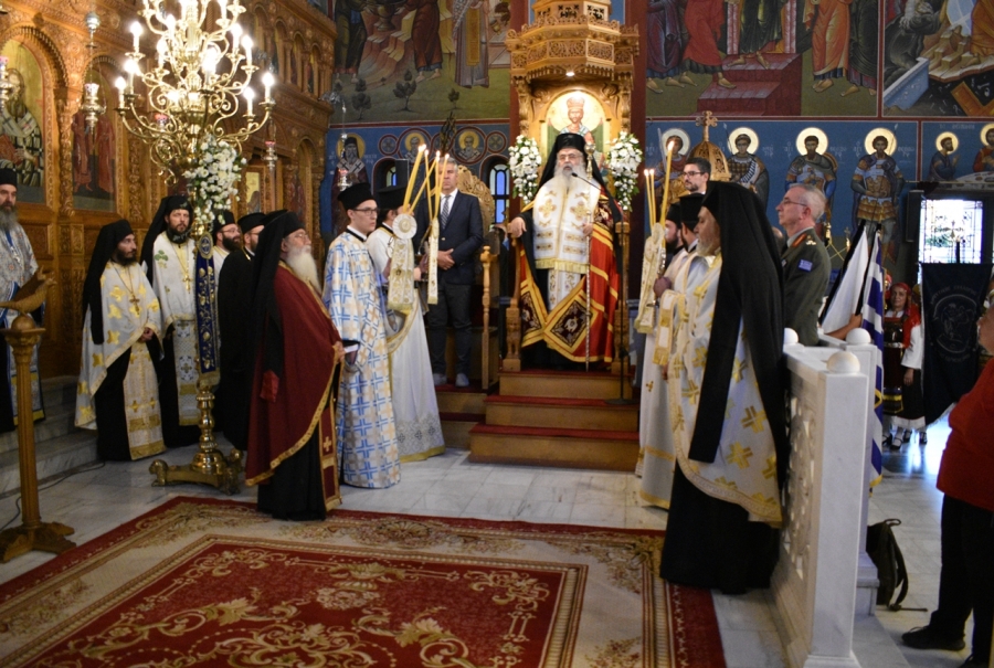 Τὸ ἀπόγευμα τῆς αὐτῆς ἡμέρας, στόν Ἱερὸ Καθεδρικὸ Ναὸ Εὐαγγελισμοῦ τῆς Θεοτόκου Κομοτηνῆς, τελέστηκε Ἐπίσημη Δοξολογία ἐπί τῇ Ὑποδοχῇ τοῦ Μακαριωτάτου, παρουσίᾳ ἐκπροσώπων τῶν πολιτικῶν καὶ στρατιωτικῶν ἀρχῶν τῶν φορέων καὶ τῶν Πολιτιστικῶν Συλλόγων τῆς περιοχῆς μας. Ἐν συνεχείᾳ ὁ Μακαριώτατος προέστη τῆς Ἐπιμνημοσύνου Δεήσεως, ὑπέρ τῶν ὑπό τῶν Τούρκων ἀναιρεθέντων Κυπρίων Ἡρώων, Κληρικῶν καὶ Λαϊκῶν, κατά τὴν τουρκική εἰσβολή τοῦ 1974, στὴ μαρτυρική καὶ ἁγιοτόκο Κύπρο.
