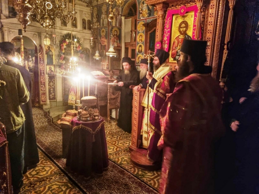 Εἰς τὰς Λατρευτικάς Συνάξεις τὸν Σεβασμιώτατον πλαισίωσαν Ἁγιορεῖτες Πατέρες ἐκ τῶν Ἱερῶν Μονῶν καί τῶν πέριξ Ἱερῶν Κελλίων.