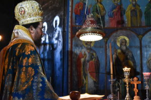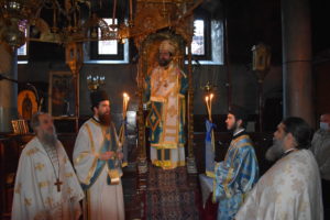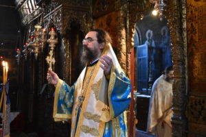 Με ιδιαίτερη ευλάβεια, αλλά και κατάνυξη τελέσθηκε η ακολουθία του όρθρου κατά την οποία χοροστάτησε ο Σεβασμιώτατος κ. Καλλίνικος, αλλά και η πανηγυρική Θεία Λειτουργία στην οποία συμμετείχαν ο καθηγούμενος της Ιεράς Μονής π. Ευλόγιος, ο αδελφός της Μονής π. Λούππος και οι διάκονοι π. Παύλος και π. Παντελεήμων.