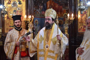 Στο τέλος της Θείας Λειτουργίας, ο Σεβασμιώτατος ευχαρίστησε τον π. Ευλόγιο για την στήριξη και την πνευματική βοήθεια που προσφέρει στην Ιερά Μητρόπολη διατηρώντας αυτό το ιστορικό Μοναστήρι. Στην συνέχεια ακολούθησε τράπεζα και η καθιερωμένη κοπή της βασιλόπιτας.