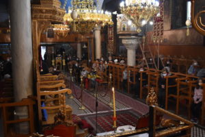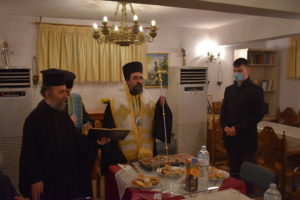Πριν την απόλυση της Θείας Ευχαριστίας ευλόγησε τα εορταστικά κόλλυβα τού Αγίου και μικρά «Βασιλοπιτάκια» τα οποία μοιράστηκαν στους μαθητές των σχολείων τού χωριού πού βρίσκονταν στον Ναό, για να εκκλησιασθούν.