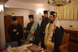 Στη συνέχεια ο Μητροπολίτης Καστορίας ευλόγησε την Βασιλόπιτα του Εκκλησιαστικού Συμβουλίου, του φιλοπτώχου της Ενορίας και των συνεργατών τού Ναού, στην αίθουσα τού Ιερού Ναού.