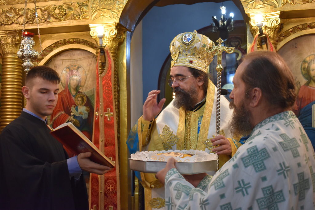 Πριν την απόλυση της Θείας Ευχαριστίας ευλόγησε τα εορταστικά κόλλυβα τού Αγίου και μικρά «Βασιλοπιτάκια» τα οποία μοιράστηκαν στους μαθητές των σχολείων τού χωριού πού βρίσκονταν στον Ναό, για να εκκλησιασθούν.