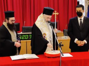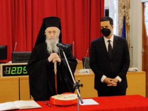 Την πίτα του Δήμου Αγρινίου ευλόγησε ο Σεβασμιότατος Μητροπολίτης Ναυπάκτου και Αγίου Βλασίου Ιερόθεος – Τοποτηρητής της Ιεράς Μητροπόλεως Αιτωλίας και Ακαρνανίας, ο οποίος ευχήθηκε καλή χρονιά σε εργαζόμενους και την Δημοτική Αρχή.