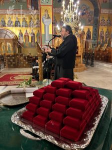 Στην Ενορία Αγίου Αθανασίου Ευόσμου, ο Σεβασμιώτατος Μητροπολίτης Νεαπόλεως και Σταυρουπόλεως κ. Βαρνάβας, ανήμερα της εορτής των Αγίων Τριών Ιεραρχών, βράβευσε με έναν Χρυσό Σταυρό όλους τους νέους και τις νέες, που πέτυχαν στις τελευταίες Πανελλαδικές Εξετάσεις και πέρασαν στην Τριτοβάθμια Εκπαίδευση της χώρας μας.