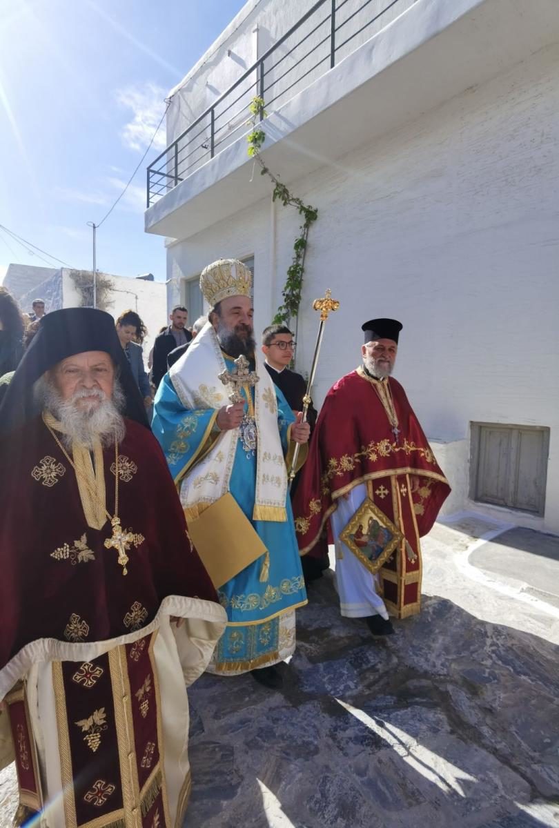Την κυριώνυμο ημέρα ο Σεβασμιώτατος χοροστάτησε του όρθρου και προεξήρχε της Θείας Λειτουργίας συνοδευόμενος από τον εφημέριο της Σχοινούσας και καθηγούμενο της Ιεράς Μονής Παναγίας Χοζοβιωτίσσης π. Φιλάρετο Θηραίο, τον αδελφό της Μονής π.Θεόφιλο Αριαντζή, τον π. Νικόλαο Αργυρίου και τον διάκονο π. Νεκτάριο Σάκκα.