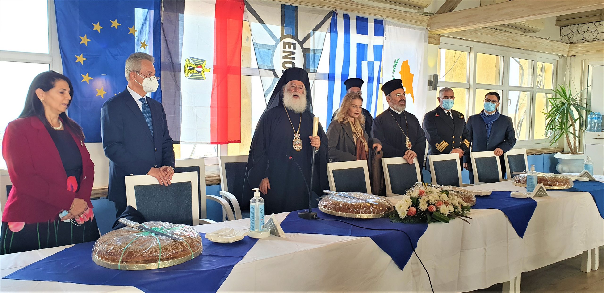 Με τις ευχές του προκαθημένου του Αλεξανδρινού Θρόνου κ.κ. Θεοδώρου Β΄, ξεκίνησε η νέα χρονιά 2022, για τον Ελληνικό Ναυτικό Όμιλο Αλεξανδρείας, όπου πραγματοποιήθηκε το κόψιμο της πατροπαράδοτης αγιοβασιλόπιτας από τον Μακαριώτατο, δίνοντας παράλληλα τα εύσημα στην Πρόεδρο του ΕΝΟΑ κα Λιλίκα Θλιβίτου και όλο το ΔΣ για το έργο που επιτελείται στο ιστορικό σωματείο.