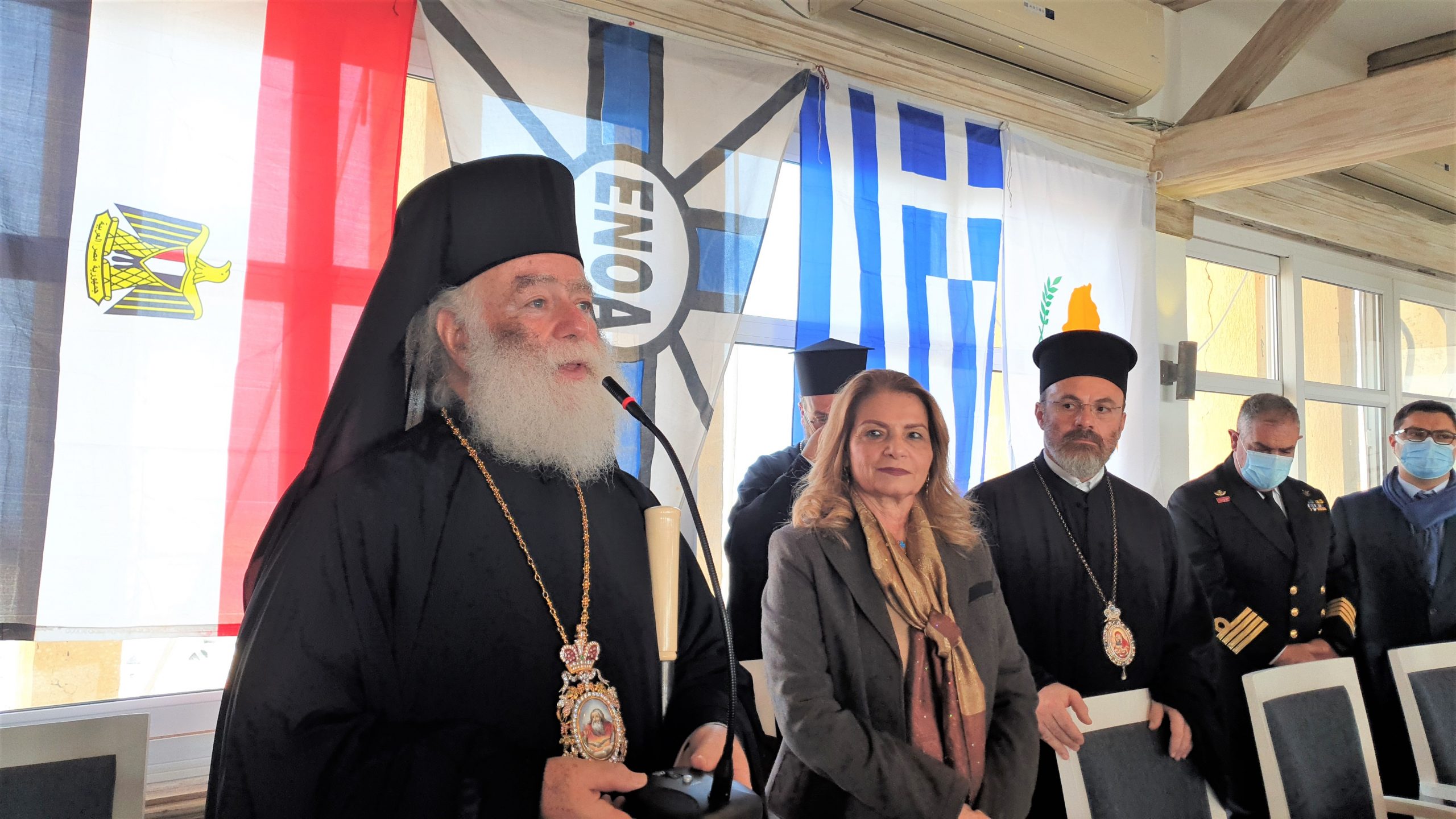 «Σήμερα είμαστε στο δικό μας ελληνικό σπίτι, στον ΕΝΟΑ», τόνισε ο Πατριάρχης Αλεξανδρείας κ.κ. Θεόδωρος. Στη συνέχεια προσέθεσε: «Διακήρυξα από τα γαλάζια νερά της Μεσογείου τη συμφιλίωση των λαών. Και υποδεχτήκαμε τη νέα χρονιά σε μία εποχή όπου όλοι είμαστε μία μικρή γειτονιά κάτω από την αγκάλη του Θεού. Σας συγχαίρω στα πάντα βλέπουμε μία ανανέωση και μία ελληνική ομορφιά. Κουράγιο, ελπίδα και ο Θεός να είναι πάντα κοντά μας».