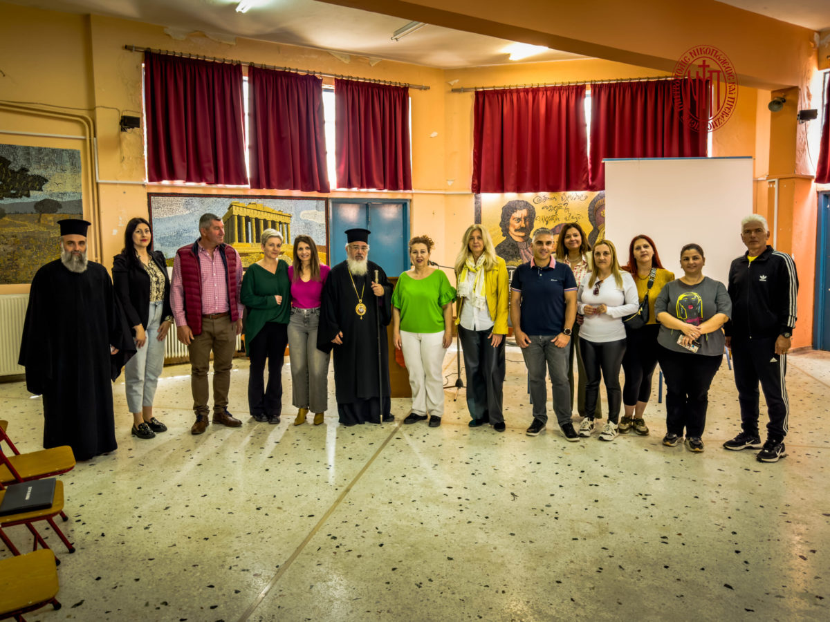 Στή σύντομη ὁμιλία του ὁ Σεβασμιώτατος, ἀφοῦ πρῶτα εὐχαρίστησε τίς κυρίες Διευθύντριες, τούς Καθηγητές καί τούς ἐκπροσώπους τοῦ Συλλόγου Γονέων, τόνισε τήν ἀξία τοῦ κάθε ἀνθρώπου ὡς μοναδικῆς προσωπικότητας, τήν ἀνάγκη συνεργασίας καί ὁμόνοιας μέ τούς συνανθρώπους καί τόν ἀγῶνα πού χρειάζεται γιά τήν κατάκτηση τῆς ἀρετῆς πού ἐκφράζεται ὡς ὑπομονή, ὡς γενναιοψυχία, ὡς ἀνεκτικότητα, ὡς καρτερία.