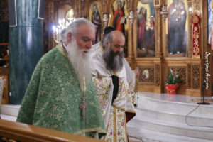 Στο τέλος της Θείας Λειτουργίας ο π. Άγγελος κατέθεσε για ακόμη μία φορά τον σεβασμό και την υιική του αγάπη προς το σεπτό πρόσωπο του Ποιμενάρχου κ. Συμεών, ευχήθηκε δε σε όλους καλό στάδιο με την ευκαιρία της επερχομένης Μ. Τεσσαρακοστής.