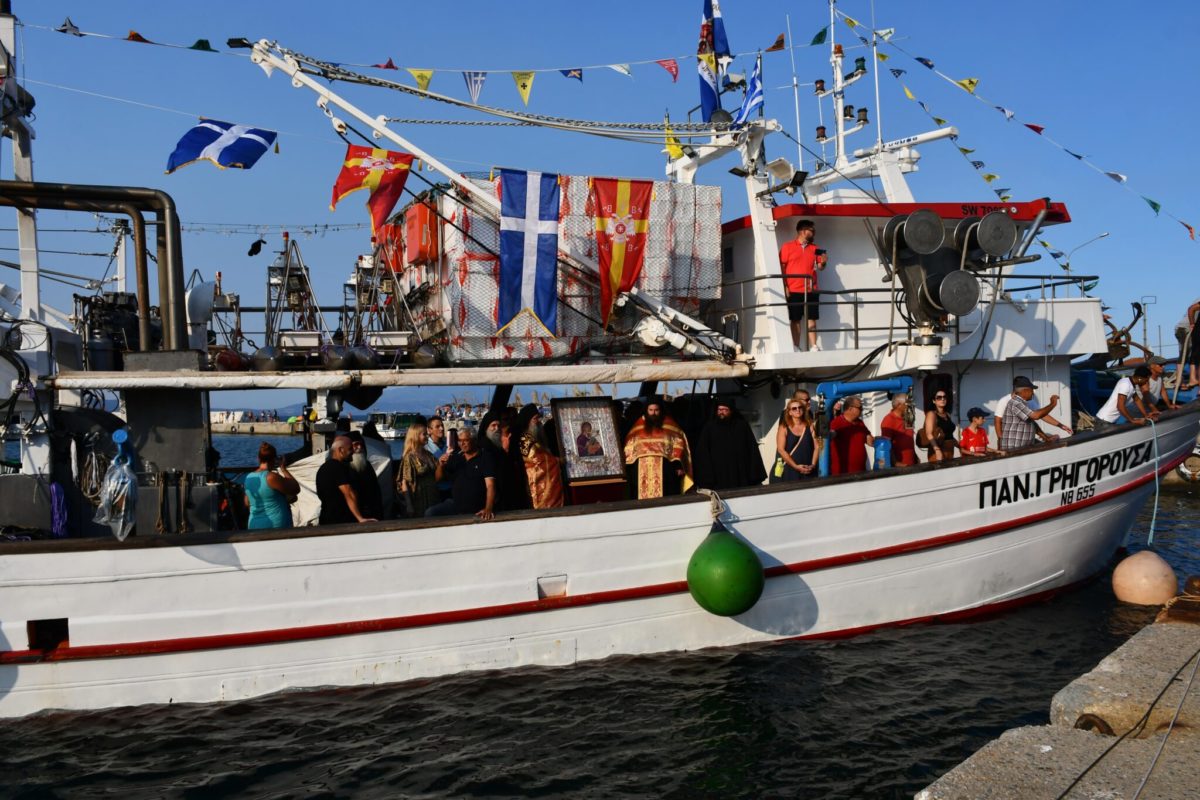 Ο άγιος Καθηγούμενος της Ιεράς Μονής, Πανοσιολογιώτατος Αρχιμανδρίτης ΝΙΚΟΛΑΟΣ Κουτλουμουσιανός, απέστειλε την Παντάνασσα συνοδευόμενη από τρείς εκλεκτούς και λίαν αγαπητούς στον Επίσκοπό μας Αδελφούς της Μονής, τους Οσιωτάτους Μοναχούς Πολύκαρπο, Ταράσιο και Ανδρέα, την Οποία μέσα από το Εκκλησιαστικά και Παραδοσιακά λαμπρά στολισμένο καΐκι των αδελφών μας από τον Σταυρό κ.κ. Νικολάου και του υιού του Χριστοφόρου Χατζηχριστοφή, πλαισιώναν οι Κουτλουμουσιανοί διακονούντες στην Ιερά μας Μητρόπολη Πατέρες, Παν. Αρχιμ. Ευλόγιος Τσαλαπατάνης και Αθανάσιος Σφουγγάρος.