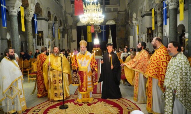 Ιερά Αγρυπνία το βράδυ της Κυριακής 13ης Οκτωβρίου 2024, στα πλαίσια των εορτών του Πολιούχου Αγίου Δημητρίου, τέλεσε ο Σεβασμιώτατος Μητροπολίτης Τρίκκης, Γαρδικίου και Πύλης κ. Χρυσόστομος στον Ιερό Ναό Αγίου Δημητρίου Θεσσαλονίκης με την συμμετοχή ιερέων της Ιεράς Μητροπόλεως Θεσσαλονίκης, αλλά και του Καθηγουμένου της Ιεράς Μονής Κοιμήσεως της Θεοτόκου Μακρυμάλλη Χαλκίδος Πανοσιολογιωτάτου Αρχιμανδρίτου Ιακώβου Μπαλωμένου αφού το πρωί κόμισε στον αύλειο χώρο του Ιερού Ναού την Τιμία Κάρα του εν αγίοις πατρός ημών Παρθενίου Επισκόπου Λαμψάκου (προστάτου των καρκινοπαθών).