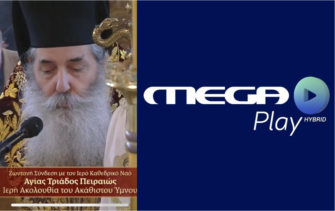 Μέσα από ένα φιλικό για τον χρήστη περιβάλλον, εξαιρετικά εύκολο στην πλοήγηση, αποκτάτε πρόσβαση στο πρόγραμμα του MEGA Play. Πατήστε το μπλε κουμπί στο τηλεκοντρόλ και παρακολουθήστε τις ζωντανές μεταδόσεις των Ιερών Ακολουθιών της Αγίας και Μεγάλης Εβδομάδος από τον Καθεδρικό Ιερό Ναό Αγίας Τριάδος Πειραιώς.