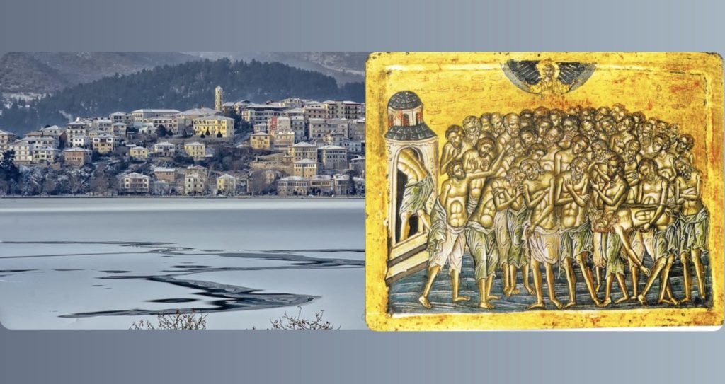 Αὐτή τήν χειμωνιάτικη, λοιπόν, ἡμέρα (ἄν καί ἄνοιξη, ἡμερολογιακά) λάμπει ἡ μνήμη τῶν ἁγίων αὐτῶν Τεσσαράκοντα Μαρτύρων στρατιωτῶν πού μαρτύρησαν στήν παγωμένη λίμνη τῆς Σεβαστείας, πρός τούς ὁποίους στρέφουμε τά βλέμματά μας.