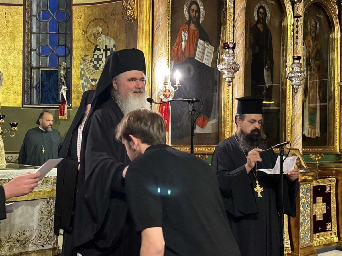 Παρέστησαν συμπροσευχόμενοι : εορτάζων Ποιμενάρχης κ. ΙΟΥΣΤΙΝΟΣ και οι Σεβασμιώτατοι Μητροπολίτες Βρυούλων κ. Παντελεήμων, Ιόππης κ. Δαμασκηνός, Δημητριάδος κ. Ιγνάτιος, Κασσανδρείας κ. Νικόδημος, Αρκαλοχωρίου κ. Ανδρέας, Σιδηροκάστρου κ. Μακάριος, Ειρηνουπόλεως κ. Δημήτριος, Ιερισσού κ. Θεόκλητος, Γρεβενών κ. Δαβίδ, Τρίκκης κ. Χρυσόστομος, Λαρίσης κ. Ιερώνυμος, Λαγκαδά κ. Πλάτων, Αιτωλίας κ. Δαμασκηνός, Φλωρίνης κ. Ειρηναίος και οΤην ιερουργία του θείου λόγου διηκόνησε ο Σεβασμιώτατος Μητροπολίτης Ιερισσού κ. Θεόκλητος. Εγκαρδίως ευχαρίστησε ο εορτάζων Ποιμενάρχης κ. ΙΟΥΣΤΙΝΟΣ, ενώ τα παιδιά των Κατηχητικών Συνάξεων της Μητροπόλεως τραγούδησαν τραγούδια ανάλογα, προς τιμήν του εορτάζοντος επισκόπου τους. Ακολούθησε εόρτιο δείπνο.