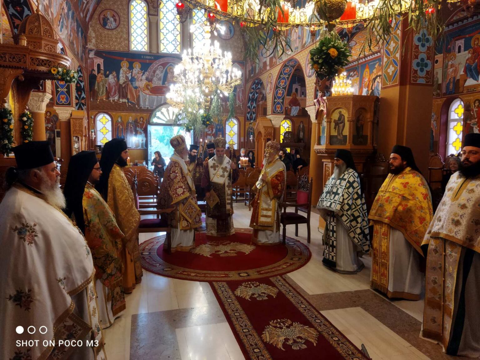 Της πολυαρχιερατικής Θείας Λειτουργίας πρεξήρχε ο οικείος Ιεράρχης, Σεβ. κ. Αμφιλόχιος και συλλειτούργησαν ο Σεβ. Μητροπολίτης μας κ. Ανδρέας και ο Σεβ. Μητροπολίτης Κυδωνίας και Αποκορώνου κ. Δαμασκηνός.