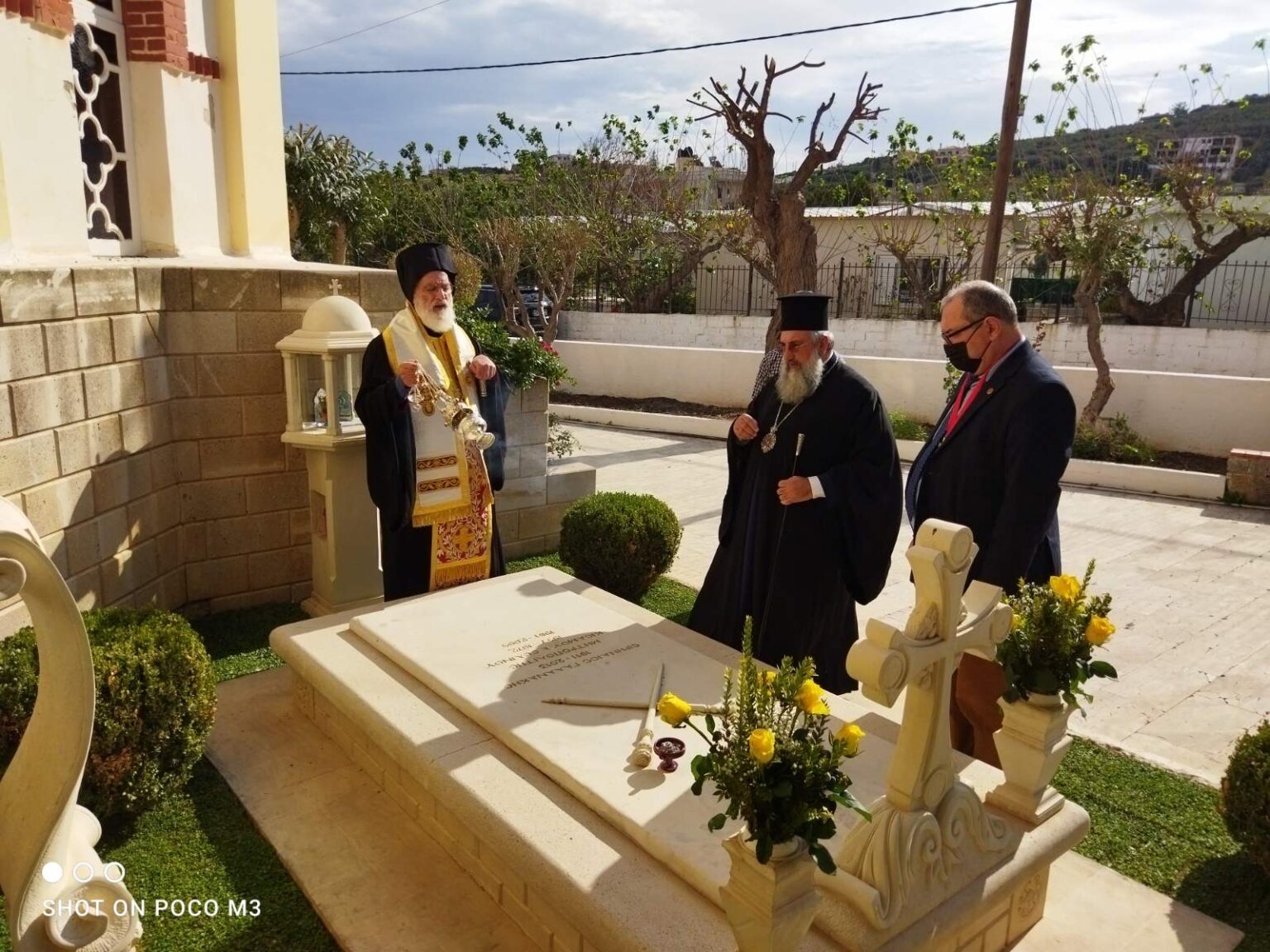 Στο τέλος της ακολουθίας ο Σεβ. Ποιμενάρχης μας τέλεσε τρισάγιο επι του τάφου στον μακαριστό Μητροπολίτη Κισάμου κυρό Ειρηναίο.