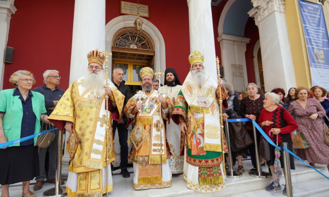 Ο Σεβασμιώτατος Μητροπολίτης Πειραιώς κ.Σεραφείμ καλωσορίζοντας τόσο τον Σεβασμιώτατο Μητροπολίτη Αιτωλίας κ. Δαμασκηνό, όσο και τον Θεοφιλέστατο Επίσκοπο Χριστιανουπόλεως κ. Προκόπιο στον «πάνσεπτο, περικαλλή, περίπυστο, εμβληματικό και ιστορικό Ναό» των Αγίων Κωνσταντίνου και Ελένης Πειραιώς, σημείωσε πως οι Άγιοι Ισαπόστολοι και Θεόστεπτοι Βασιλείς «κατέπαυσαν τους τρεις αιώνες των αιματηρών διωγμών κατά της αμωμήτου πίστεως», «επύργωσαν μία χιλιόχρονη χριστιανική αυτοκρατορία που διεμόρφωσε τον ευρωπαϊκό πολιτισμό, που διεκράτησε της ορθοδόξου αληθείας με τας Αγίας Εννέα Οικουμενικάς Συνόδους, που διετύπωσε το αειφόρο Δόγμα της αμωμήτου πίστεως, που αντιμετώπισε τις πολυειδείς επιθέσεις του σκότους και της διαφθοράς».