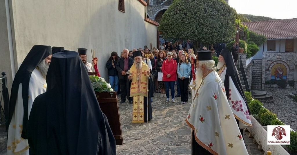 Το απόγευμα της Τετάρτης της Διακαινησίμου, 8 Μαΐου 2024, ο Σεβασμιώτατος Μητροπολίτης Σπάρτης κ. Ευστάθιος, στο πλαίσιο της Τοποτηρητείας του στην Ιερά Μητρόπολη Μαντινείας και Κυνουρίας, μετέβη στην ιστορική Ιερά Μονή Αγίου Νικολάου Βαρσών, όπου χοροστάτησε στον πανηγυρικό Εσπερινό επί τη μετακομιδή των Ιερών Λειψάνων του Αγίου Νικολάου Αρχιεπισκόπου Μύρωνος της Λυκίας του Θαυματουργού και ομίλησε επίκαιρα στους ευλαβείς προσκυνητές.