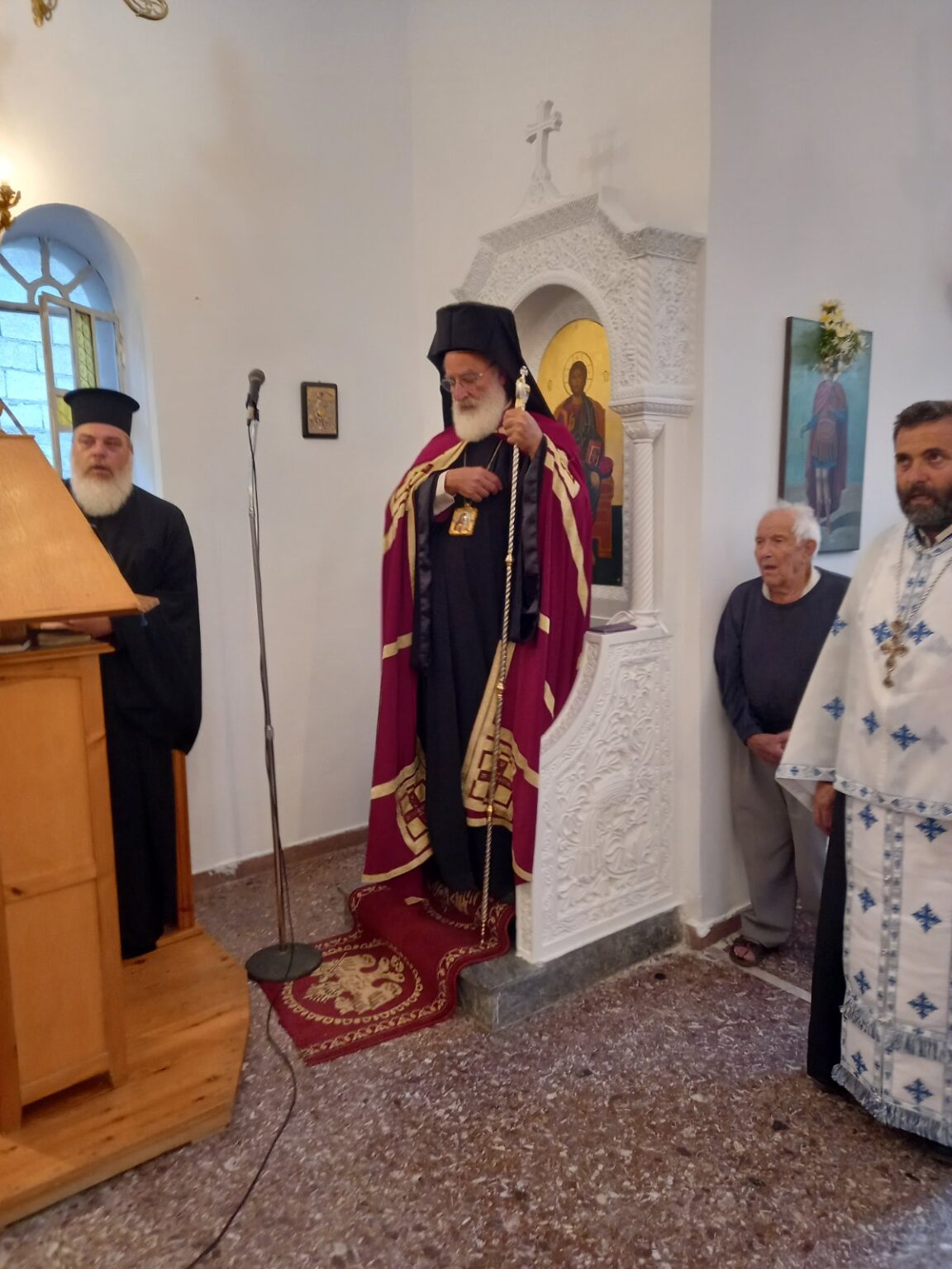 Στην ακολουθία πήραν μέρος, οι Πρωτοπρεσβύτεροι: Μαρίνος Πατεράκης, Γεώργιος Βελιβασάκης, Αντώνιος Ψαρολογάκης, Κωνσταντίνος Ψαρολογάκης, εφημέριος της Ενορίας και ο Αρχιδιάκονος Μαρίνος Δασκαλάκης, ενώ το αναλόγιο διακόνησε ο Γενικός Αρχιερατικός Επίτροπος της καθ’ημας Ιεράς Μητροπόλεως Πρωτοπρεσβύτερος Γεώργιος Χριστοδουλάκης και ο διάκονος Πέτρος Αράπογλου.