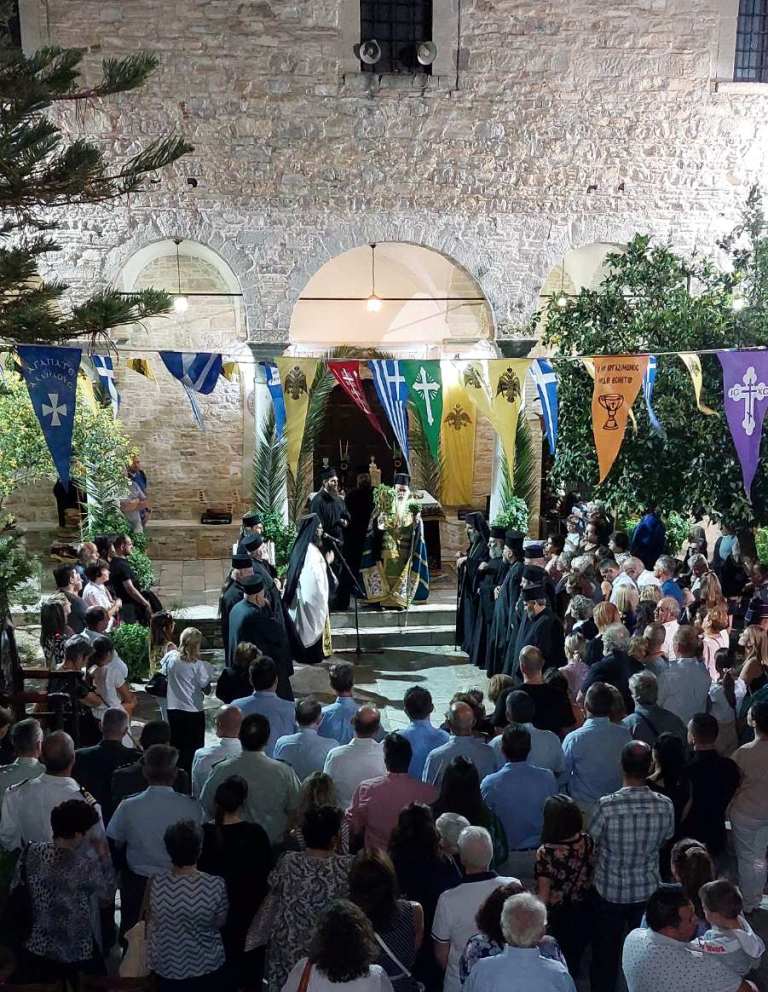 Ὅλες οἱ ὡς ἂνω λατρευτικές Συνάξεις θα τελεσθοῦν ὑπαιθρίως εἰς τόν προαύλιο χῶρο τῆς Ἱερᾶς Μονῆς, ἒμπροσθεν τοῦ πληγωμένου καί μεγαλοπρεπούς Καθολικοῦ ἀπό τοῦ φονικοῦ σεισμοῦ τοῦ 2020 .